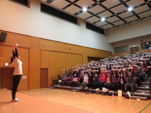 第1部は、特定非営利活動法人健康経営研究会理事長 岡田邦夫先生の「快適な日常生活を送るための健康づくり~運動と生活習慣~」についての講演、第2部は、大阪ガスグループ福祉財団 健康運動トレーナー 堀江利恵先生の手拭いを使った健康体操を行いました。